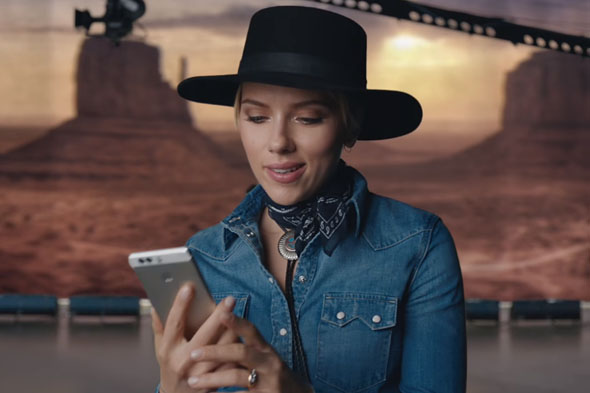 Scarlett Johansson protagoniza la nueva campaña publicitaria de la empresa china de telefonía móvil Huawei. Se podrán ver anuncios en prensa, revistas y televisión.